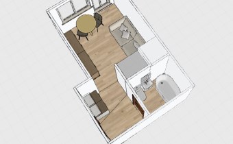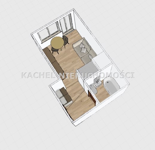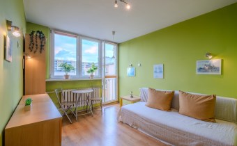 - jasnego pokoju z miejscem na część wypoczynkową i sypialnianą